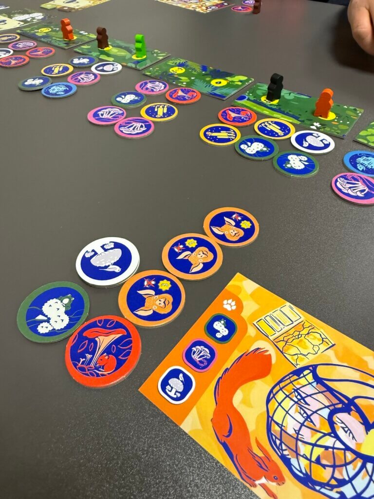 Une fois que chaque joueur à placer ses Meeples, on résout les Forêts une par une. Le 1er joueur placé choisit un tas, le deuxième celui qui reste. Si un joueur est seul, il choisit deux Champignons de son choix. Si personne n’est présent, les Champignons retournent dans le sac.