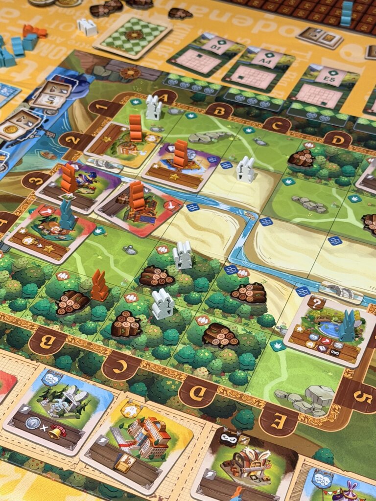 Le thème est malheureusement totalement inutile et oublié dès le premier tour, et je n’ai même pas regardé le moindre visuel d’animal que je prenais de toute la partie. C’est dommage car il y a un effort notable pour que ça fasse sens et les visuels sont très jolis. C’est donc finalement très abstrait et on va se concentrer sur les icônes de coût/déplacement en haut et les pictos en bas. La gestion des positions et déplacements de nos scientifiques est une vraie chouette idée, et la combinatoire au niveau des cartes, entre cette contrainte, le placement de nos ouvriers, la zone où on veut placer la carte, le picto animal et celui véhicule amène une grosse réflexion vraiment intéressante pour un jeu de ce calibre. Les tours sont ultra-rapide mais le choix de la carte pour compléter notre main va prendre presque plus de temps à cause de cette combinatoire. On finit par le faire pendant que le joueur suivant démarre son tour. Si on rajoute à ça nos objectifs, ça nous force à suivre un peu où en sont nos adversaires car hormis ce point, le jeu est très “chacun dans son coin”. C’est en tout cas globalement très agréable, relativement fluide et plaisant à jouer, avec quelques vraies belles idées à l’intérieur.