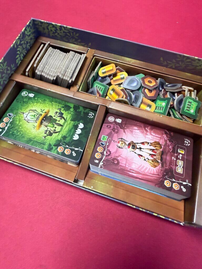 L’édition est au poil avec un travail graphique somptueux, chaque robot possède une âme tout en ayant des traits propres à sa famille. La boite de jeu permet aussi d’être utilisé en pioche et se révèle indispensable à 4 joueurs afin d’indiquer qui pioche pour donner à qui. Malin. Les ressources sont dans une boite cartonnée qui se ferme pour ne pas s’éparpiller dans la boite. C’est un sans faute.