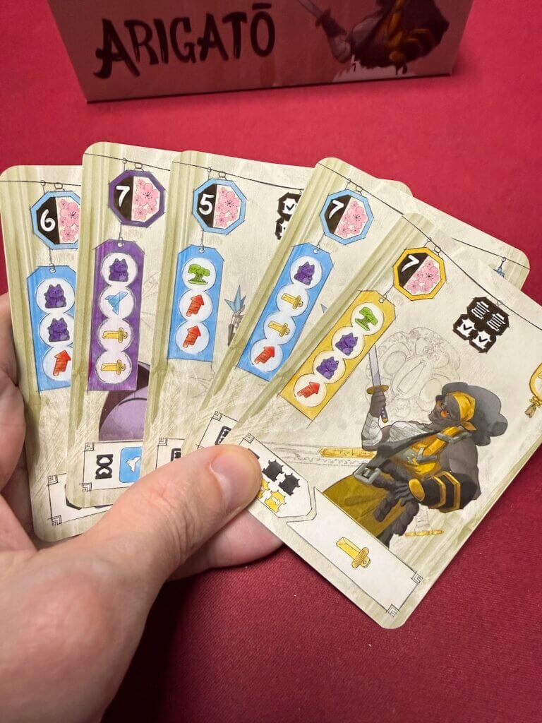 Et c’est tout ! Mais ça suffit amplement pour faire un jeu bien tendu, où protéger ses 7, voir en chasser d’autres va être primordial pour l’emporter. C’est très prenant, assez addictif et finalement très technique. Entre la communication “à l’aveugle” via les 3 cartes à passer en début de manche pour faire passer des infos (encore faut-il qu’elles soient comprises correctement) et la chasse/protection des Boss ensuite, c’est vraiment plaisant! Visuellement c’est assez … discutable avec un style très (trop?) japonisant. On va adorer ou détester. Mais on apprécie plutôt la lisibilité des couleurs, des cartes (avec l’indicateur d’où la carte se situe dans la couleur), les chiffres dans les 4 coins, et les 7 foil (brillantes) du plus bel effet. C’est pour nous, le meilleur jeu de pli que nous en avons en famille à 4 joueurs. Point.