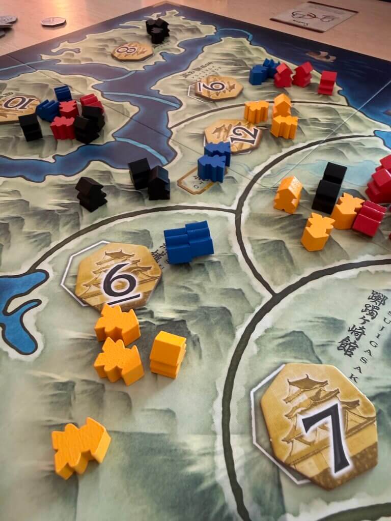 C’est tout cet ordre de résolution qui fait le charme de Sengoku. Les territoires les plus faibles font peu de point, mais vont permettre, en les remportant, de renforcer les territoires adjacents, impliquant un calcul très astucieux et pas si évident pour être celui avec le plus de points en fin de partie.