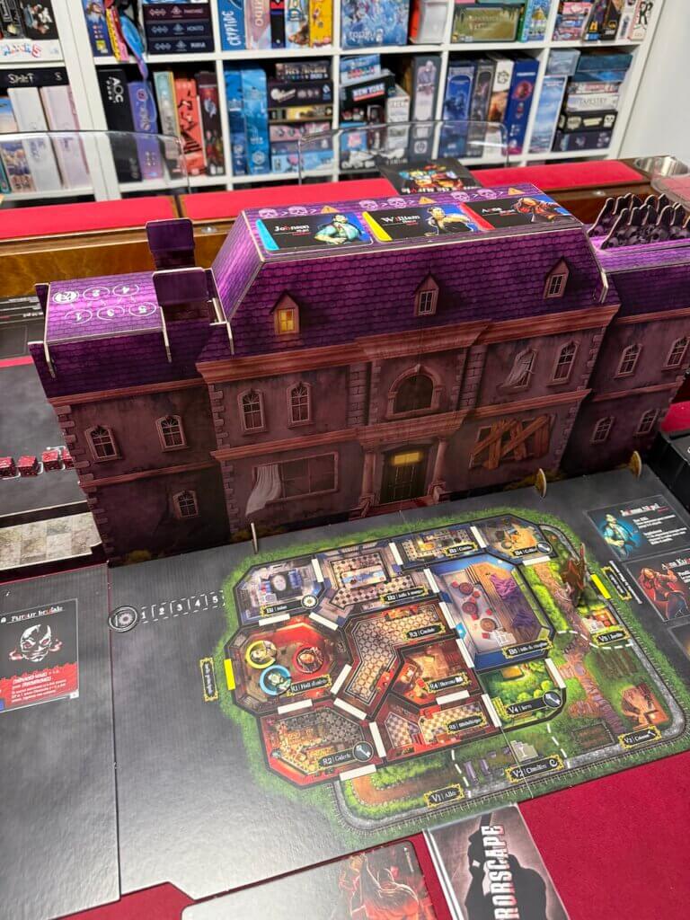 Le matériel est d’excellente qualité, mais malheureusement, il faut démonter une bonne partie du Manoir entre chaque partie. J’ai peur qu’il s’abime très fortement à force même s’il est très épais. Seul la piste à dés reste montée à 90% et est rangée dans la boite. Je ne suis pas certain qu’ils pouvaient faire mieux, mais ça risque de rester monté et caché derrière d’autres jeux de peur de trop l’abimer à force de montage/démontage.
